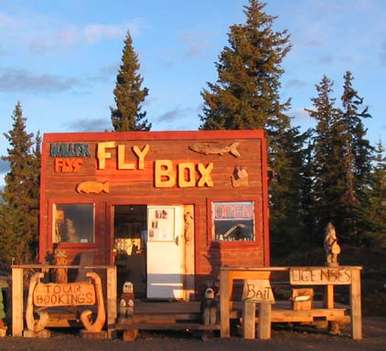 The "Fly Box" Tackle Shop has a great selection of proven Alaskan fly patterns, and all the essential fishing gear needed to catch trophy fish in Alaska. Our small, but well equipped fly shop is a must stop when planning your fishing vacation on the Kenai Peninsula. We are blessed to have so many options for fishing here in Alaska, either on the ocean, lakes or rivers, the Fly Box provides bait, tackle and gear for all. The Fly Box has a great collection of Alaskan fly patterns proven on the local rivers. Located on the Sterling Highway in Anchor Point, near the Anchor River. The rivers on the lower Kenai Peninsula offer an early summer King Salmon run, Rainbows, Dolly Varden, Silvers and incredible Steelhead fishing in the fall. Fishing is always hot after Aug. 1st, when the entire Anchor River opens up, which makes for awesome fall fishing well into October. Stop in for the latest fishing information, buy some new fly's and pick up some fire wood for the campsite. RV's and trailers are welcome, easy in-and-out access with our pull through drive.